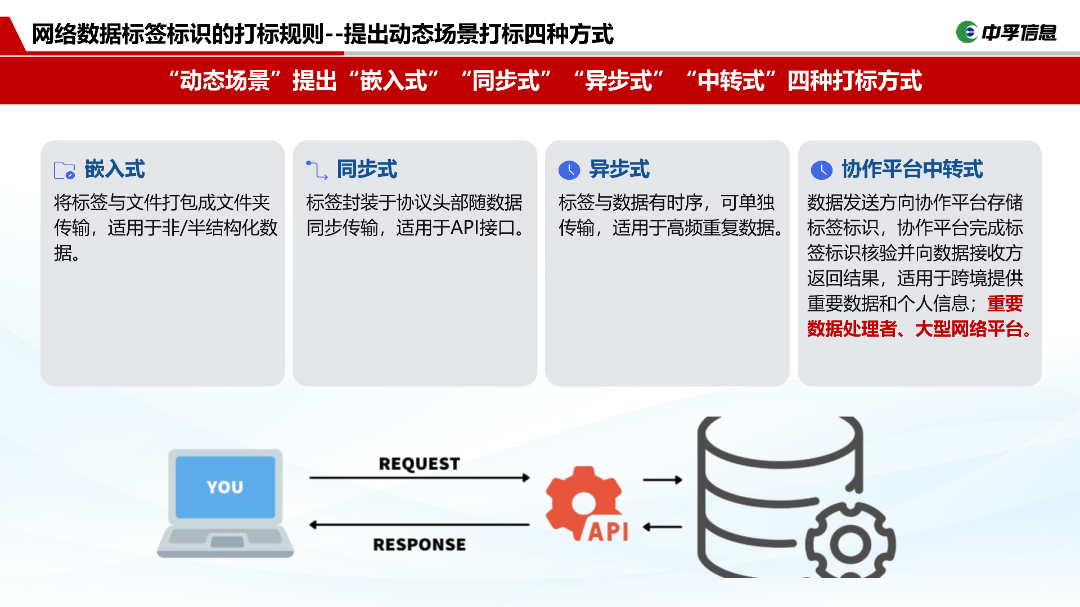 适配政务云环境采用旁路模式部署,顺利获得接收数据发送方上报的合规动态标签完成存档管理,同时生成唯一动态标识下发至数据发送方完成打标,对数据接收方上报的动态标识召开一致性核验,保障标签在流转过程中的真实性、有效性与完整性。